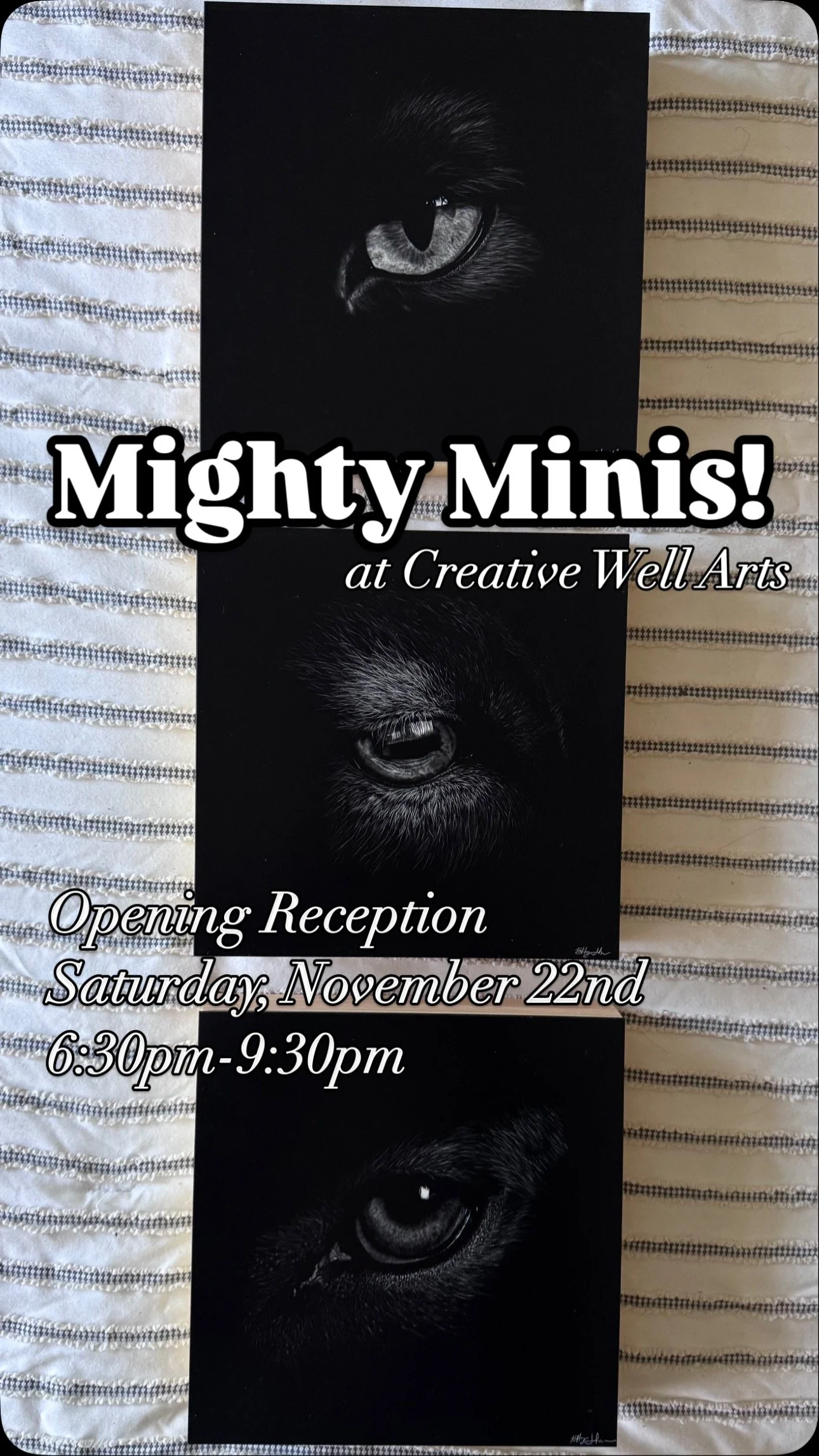 The Mighty Minis Art Show returns for its fourth edition on Saturday, November 22, 2025, from 6:30 to 9:00 p.m. at The Garage Gallery at The Creative Well.